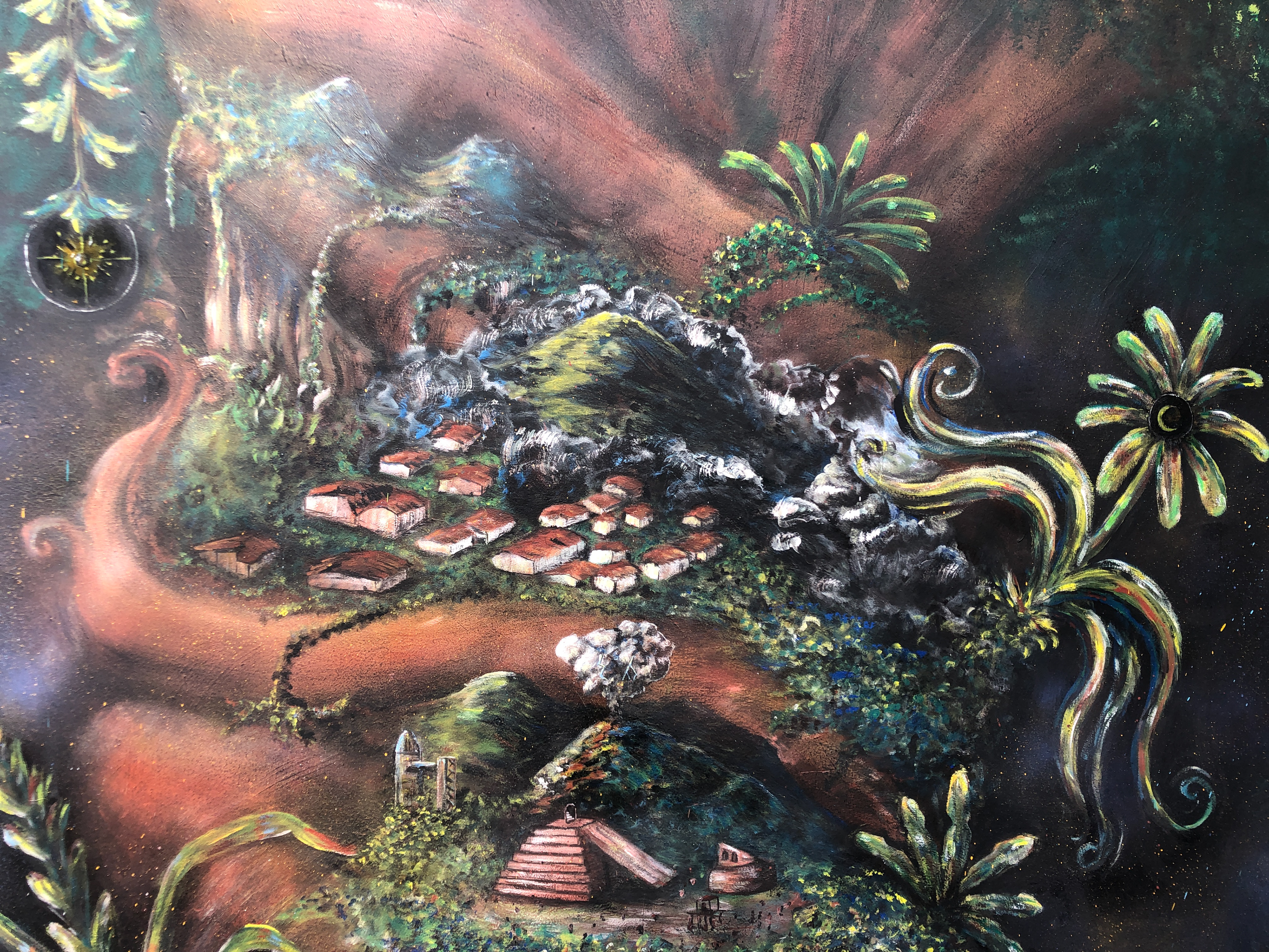 El arbol de vida, enraizado como la ayahuasca, con vida que brota y da a luz a otra realidad que se mezcla con todos.