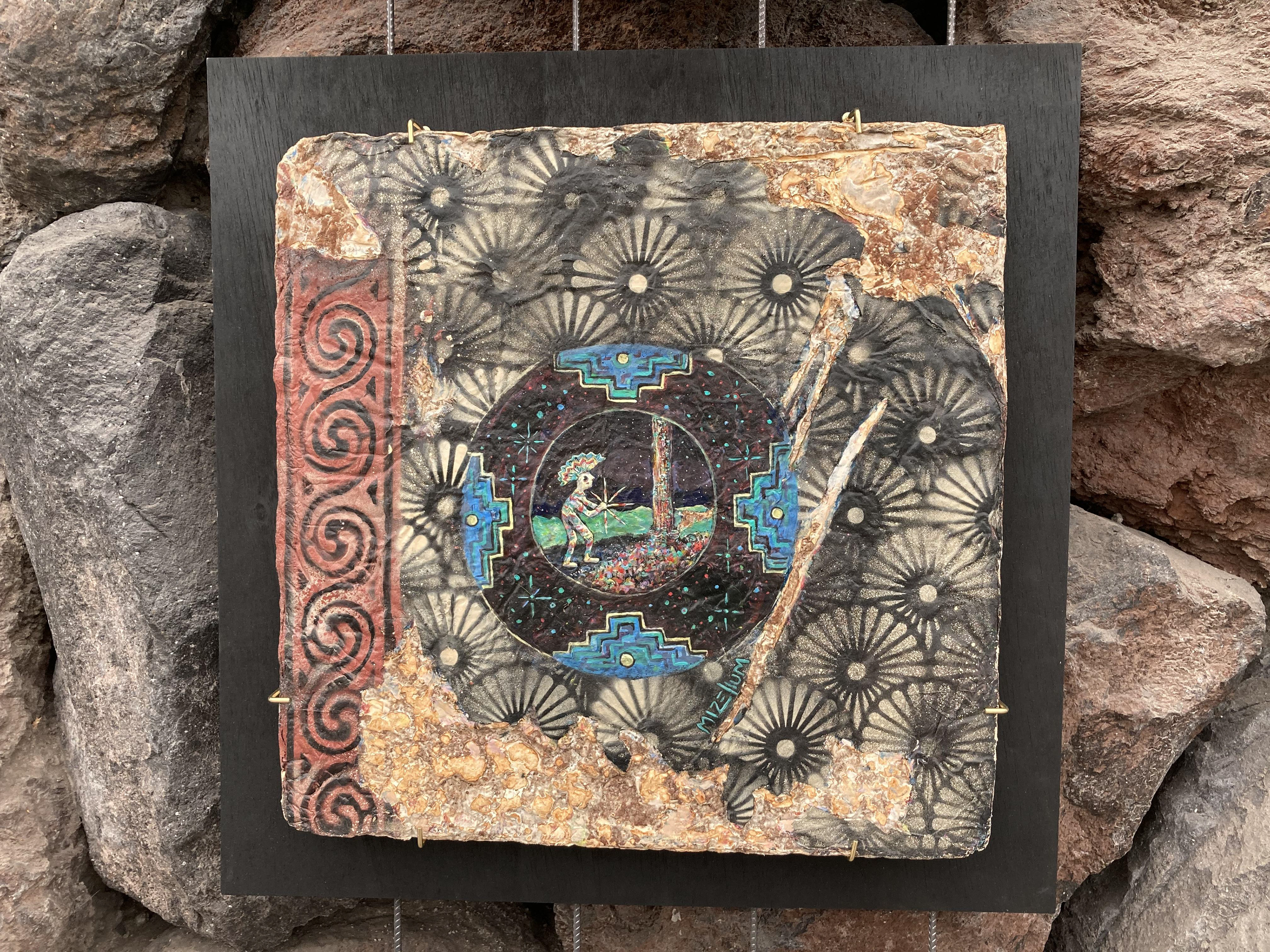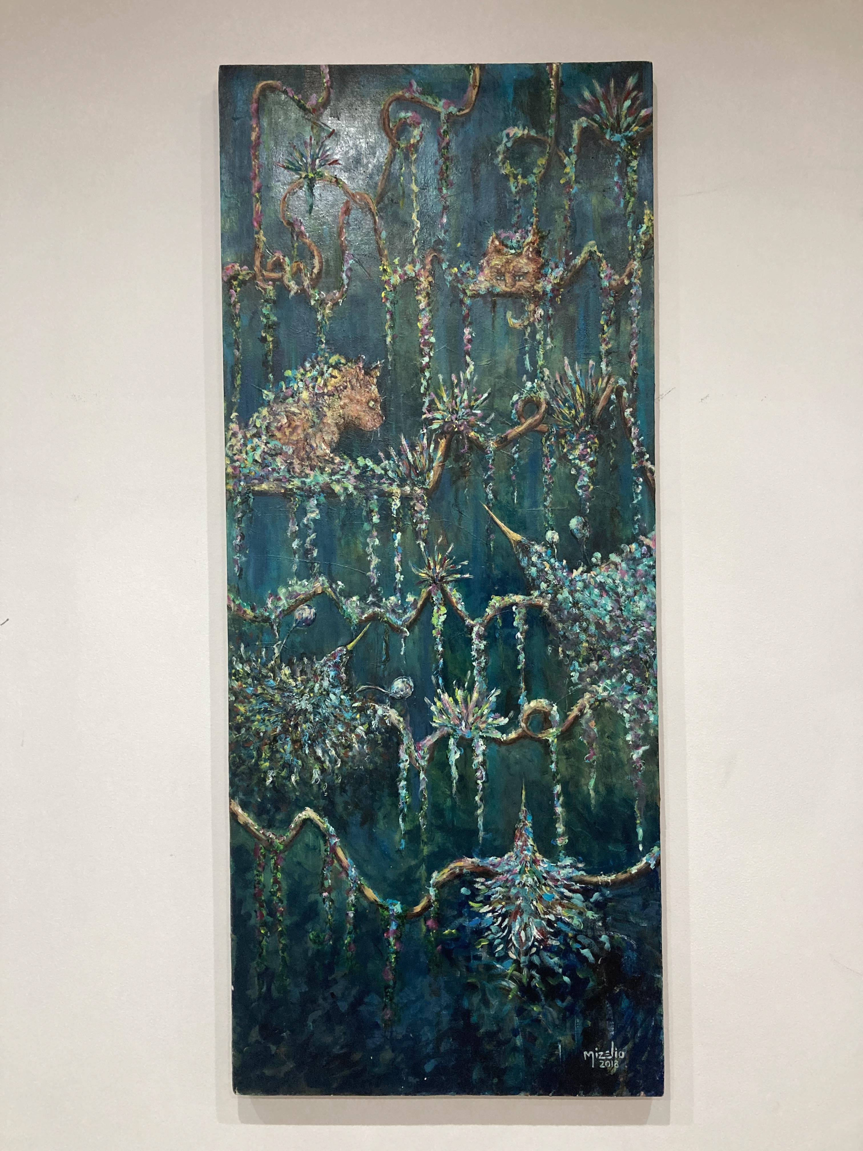 Acrílico y aerosol sobre lienzo de micelio ganderma
