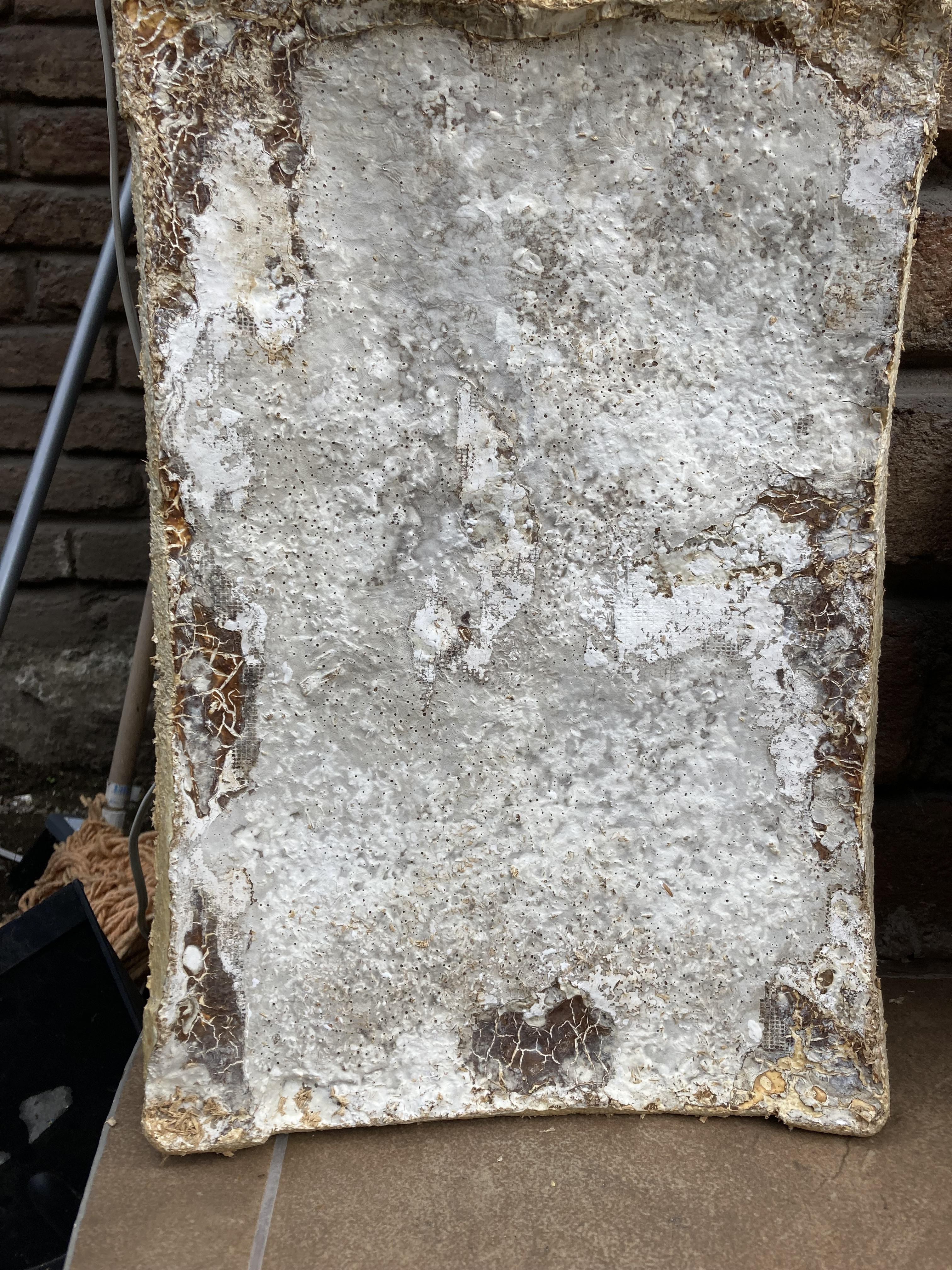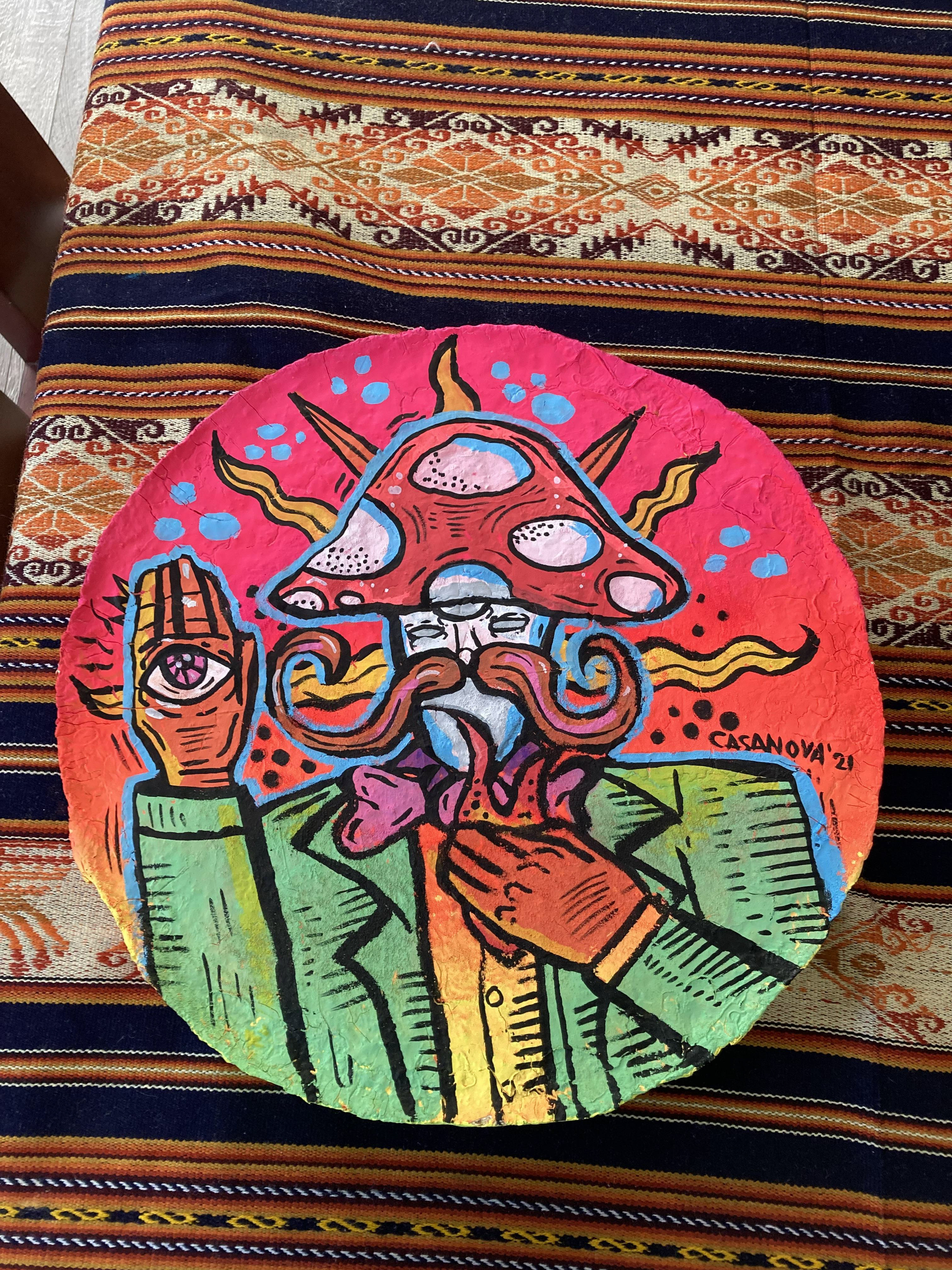 Para el proceso de creación de los Mycocanvas contamos directamente con el equipo de Mycomaker dirigido por Nelson Dueñas biólogo - micotector, y su equipo: Stev Barros - técnico de expansión miceliar y Elizabeth Cruz - técnica de modelamiento. La producción de cada lienzo dura 23 días, empieza con la expansión de micelio de primera generación (semilla) del hongo Ganoderma, a un micelio de segunda en sustrato (alimento del hongo) basado en aserrín de madera. El micelio de hongo coloniza por 15 días sobre un sustrato previamente formulado bajo estándares internos y bajo condiciones de oscuridad, alta humedad y temperatura estable. Una vez que Mycocanvas ha terminado su proceso de cultivo, es necesario secarlo inmediatamente para no corre riesgos de contaminación.